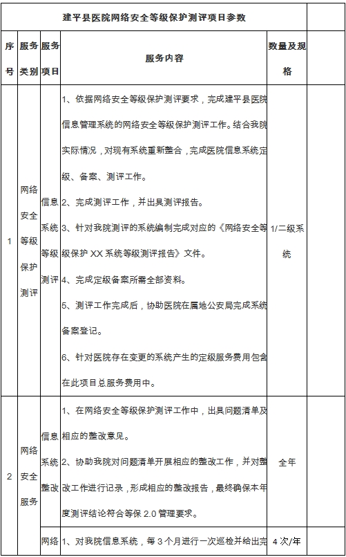 建平县医院网络等级保护测评要求