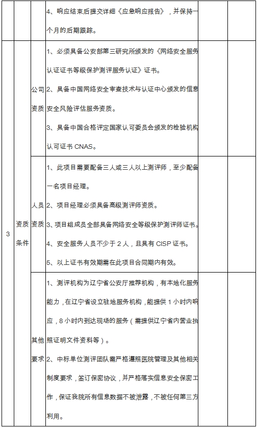 3、《网络安全服务认证证书等级保护测评服务认证》证书(复印件加盖公章)。